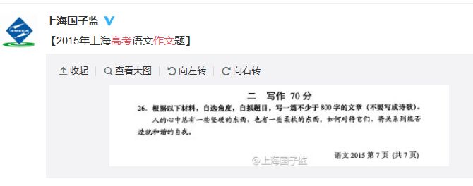 阳光高考门户小编考后第一时间整理发布2015年上海市高考作文题目