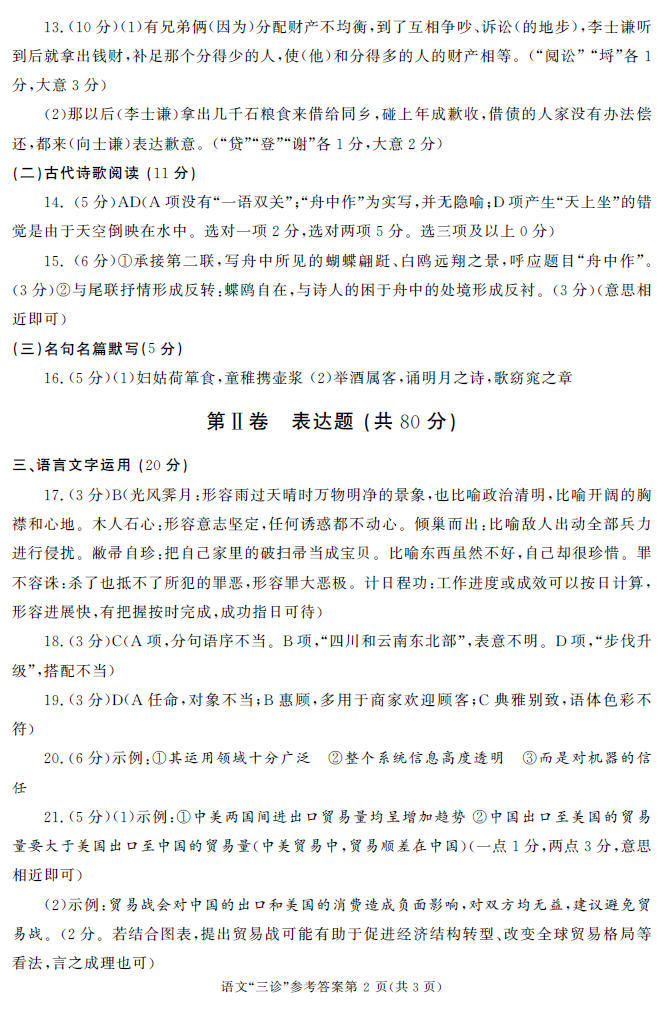 2018成都三诊语文试题答案(2)