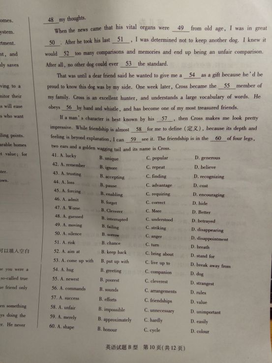 河南天一大联考2016-2017学年高中毕业班阶段性测试二英语试题(10)