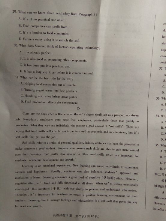 河南天一大联考2016-2017学年高中毕业班阶段性测试二英语试题(7)