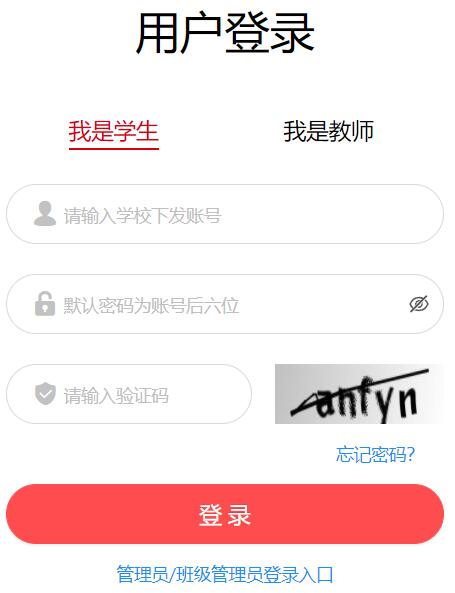 !学生和教师账号均由学校管理员统一生成, 无需注册,请联系校级管理员或班级管理员获取账号管理员/班级管理员登录入口