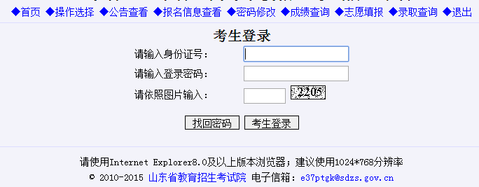 本平台是考生参加山东省普通高校招生各类统一考试的报名、成绩查询、志愿填报、录取查询的指定平台。