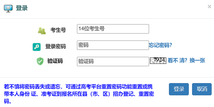 考生请保管好自己的登录密码,切不可泄露给他人。任何部门、学校、个人无权要求考生提供登录密码或代替考生操作。若因自身保管不慎而泄露密码,所造成的不良后果均由考生本人承担。