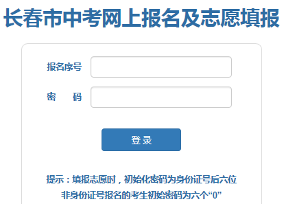 提示:填报志愿时,初始化密码为身份证号后六位 非身份证号报名的考生初始密码为六个“0” 长春市中考网上报名及志愿填报