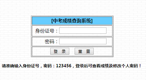 请准确输入身份证号,密码:123456,登录后可查看成绩及修改个人密码!