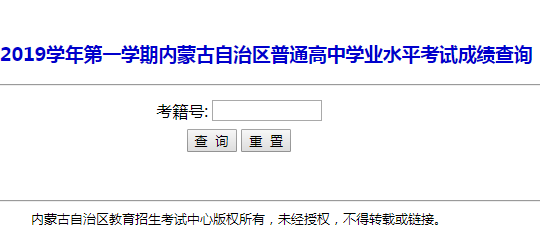 内蒙古自治区教育招生考试中心版权所有,未经授权,不得转载或链接。 http://www.xuecan.net/chengji/25829.html 2019学年第一学期内蒙古自治区普通高中学业水平考试成绩查询