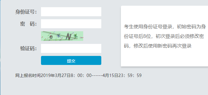 网上报名时间2019年3月27日8:00:00------4月15日23:59:59