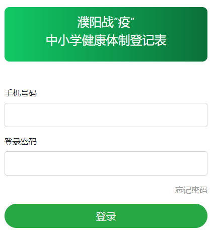 中小学健康体制登记表 http://wc.windycoming.cn/www/login.html濮阳战疫中小学健康体制登记表