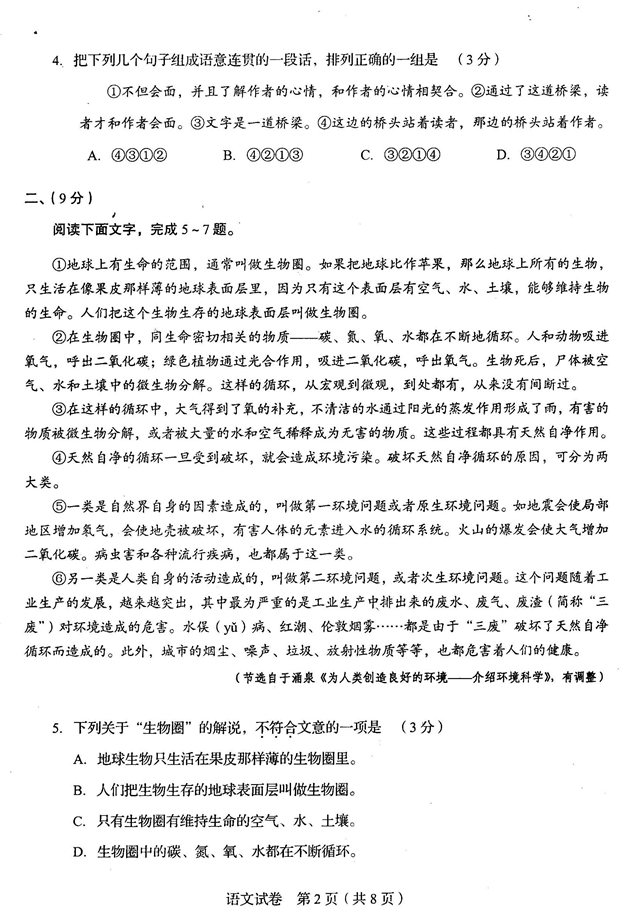 安徽省2014年普通高中学业水平考试语文试题及答案(2)
