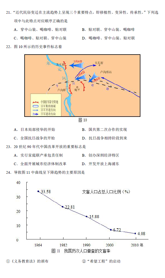 安徽省2015年普通高中学业水平考试历史试题及答案word版(3)