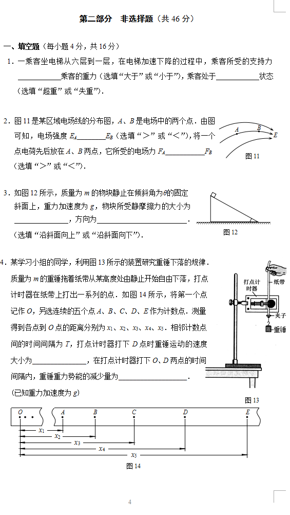 2014年北京市夏季普通高中会考物理试题及标准答案(4)