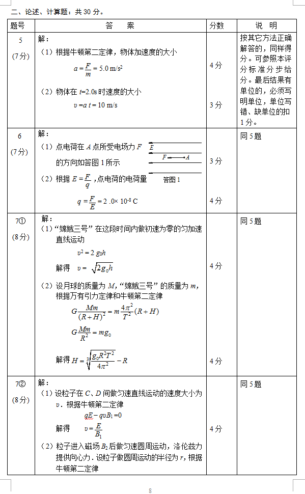 2014年北京市夏季普通高中会考物理试题及标准答案(8)