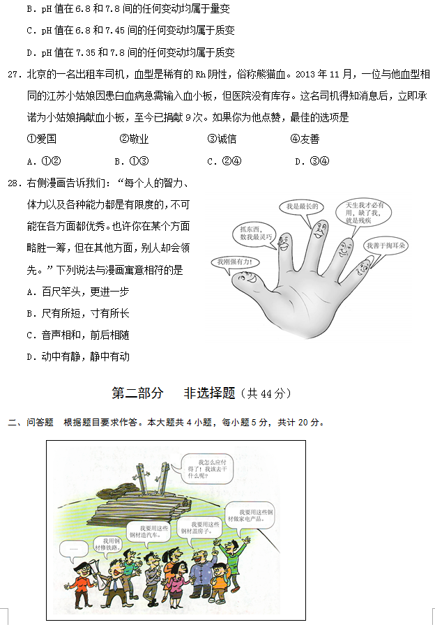 北京市2015年春季普通高中会考思想政治试题及答案(6)