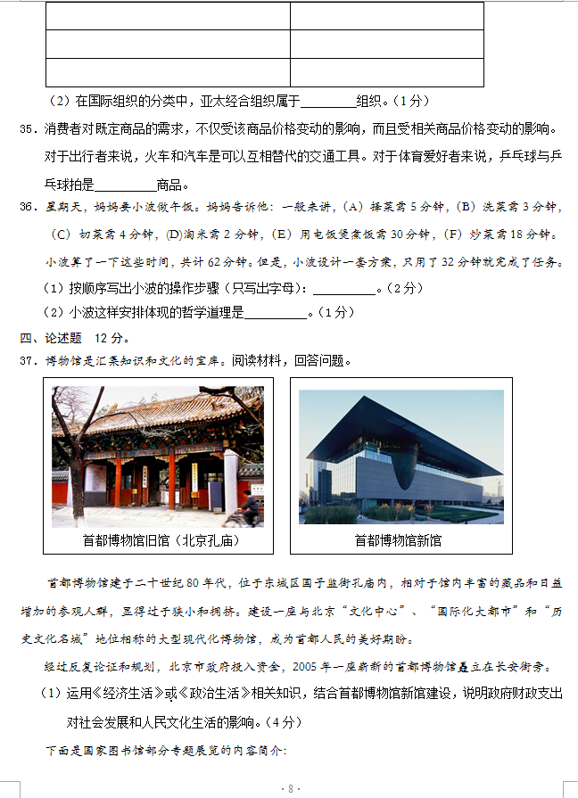 北京市2015年春季普通高中会考思想政治试题及答案(8)