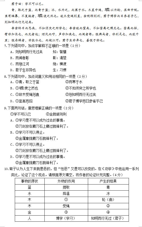 北京市2015年春季普通高中会考语文试卷及答案(4)