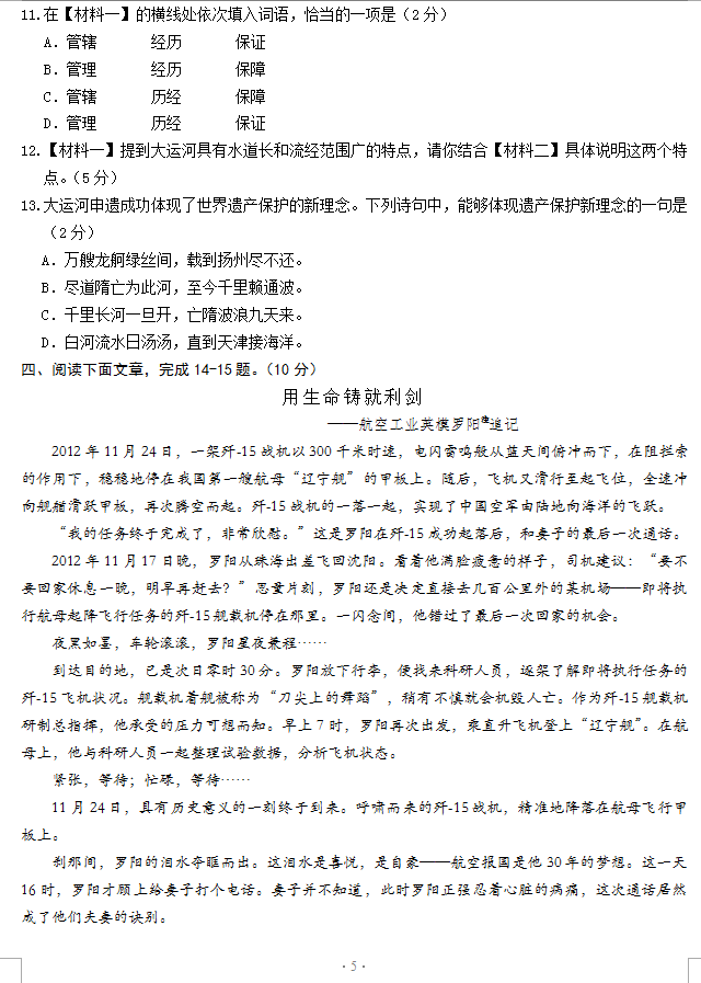 北京市2015年春季普通高中会考语文试卷及答案(6)