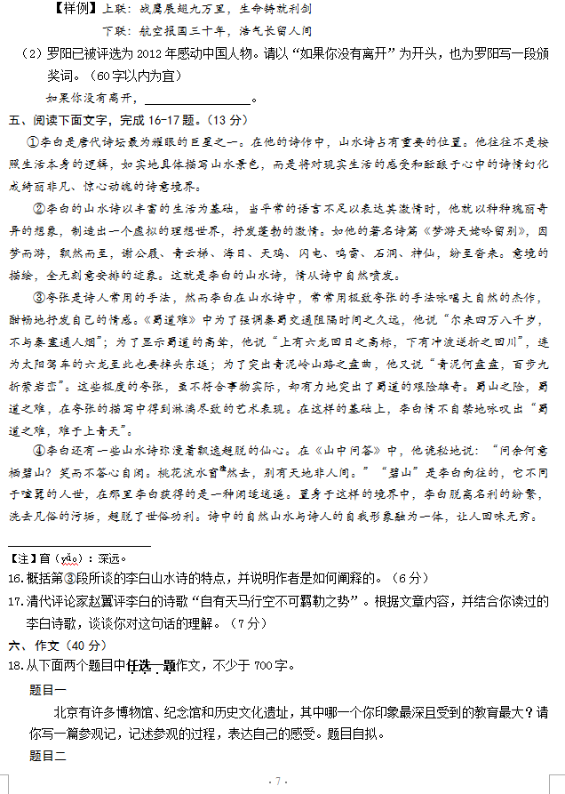 北京市2015年春季普通高中会考语文试卷及答案(8)