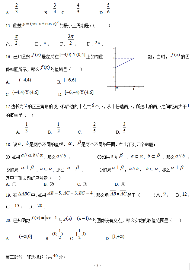 北京市2015年春季普通高中会考数学试卷及答案(3)