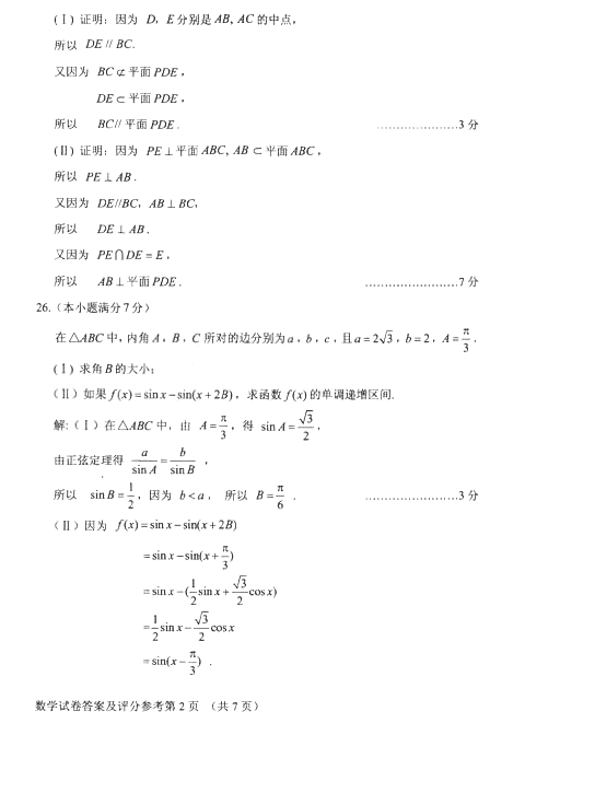 北京市2015年春季普通高中会考数学试卷及答案(7)