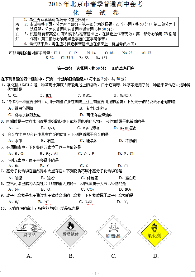 北京高中学业水平考试试题  http://www.yggk.net/xueye/beijing/zhenti/