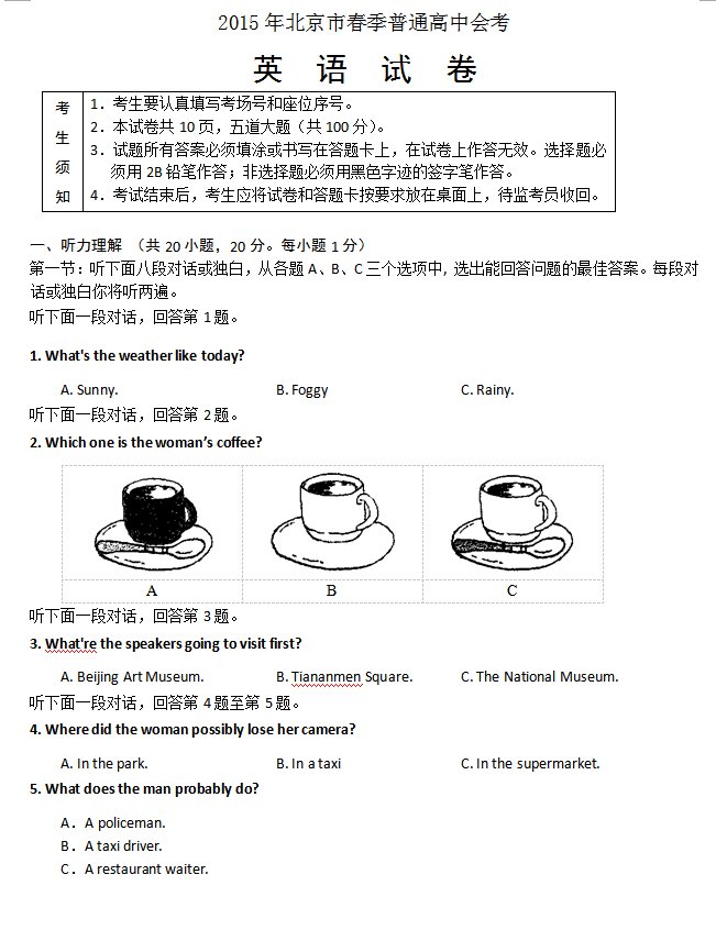 北京高中学业水平考试试题  http://www.yggk.net/xueye/beijing/zhenti/