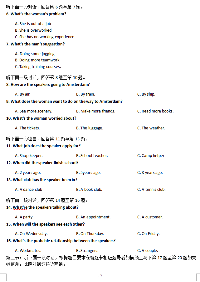 北京普通高中2015年春季会考英语试题及答案(2)