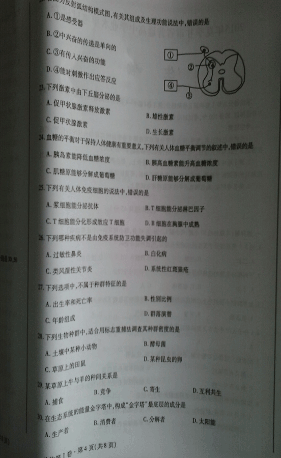 甘肃省2015年夏季高中学业水平考试生物试题卷(4)
