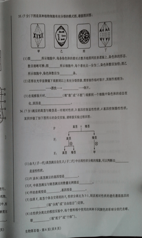 甘肃省2015年夏季高中学业水平考试生物试题卷(6)