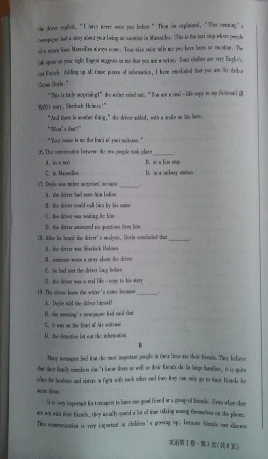 甘肃省2015年夏季高中学业水平考试英语试题(扫描版)(3)