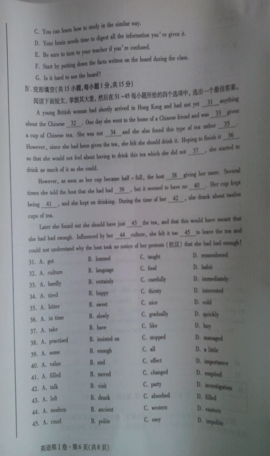 甘肃省2015年夏季高中学业水平考试英语试题(扫描版)(6)