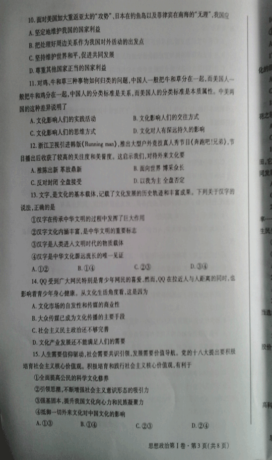甘肃省2015年夏季高中学业水平考试思想品德试题(扫描版)(3)
