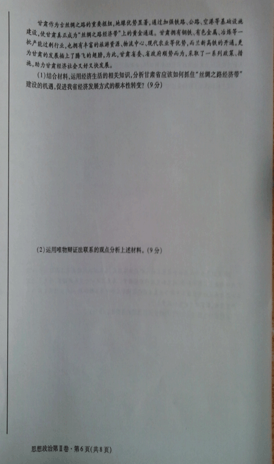 甘肃省2015年夏季高中学业水平考试思想品德试题(扫描版)(6)