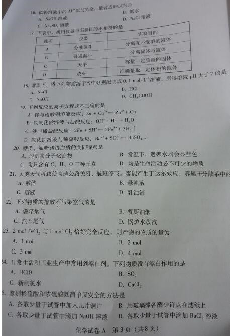 2014年6月份广东高中学业水平考试化学试题及答案(3)