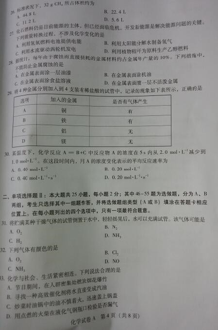 2014年6月份广东高中学业水平考试化学试题及答案(4)