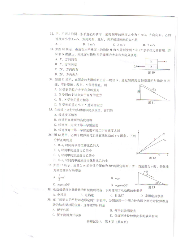 广东2015年6月普通高中学业水平考试物理试题及答案(5)