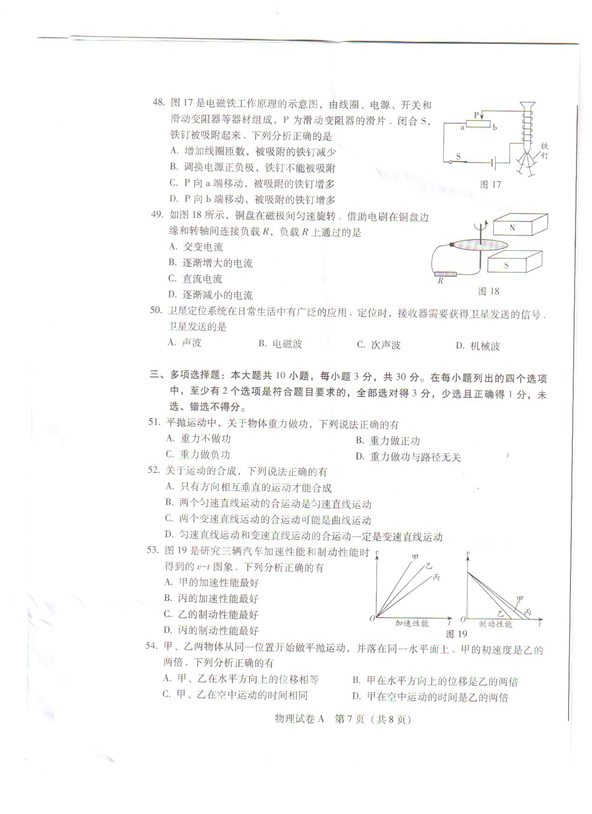 广东2015年6月普通高中学业水平考试物理试题及答案(7)