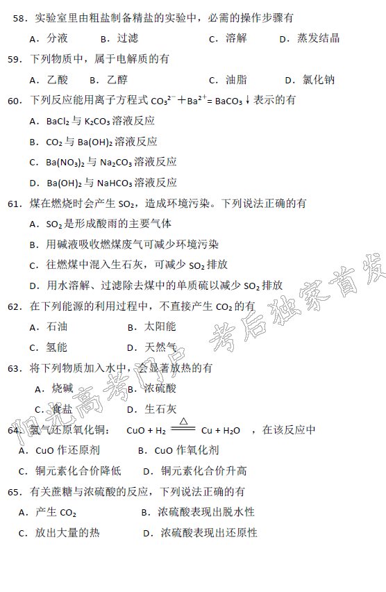 2015年6月广东省普通高中学业水平考试化学试题及答案(8)