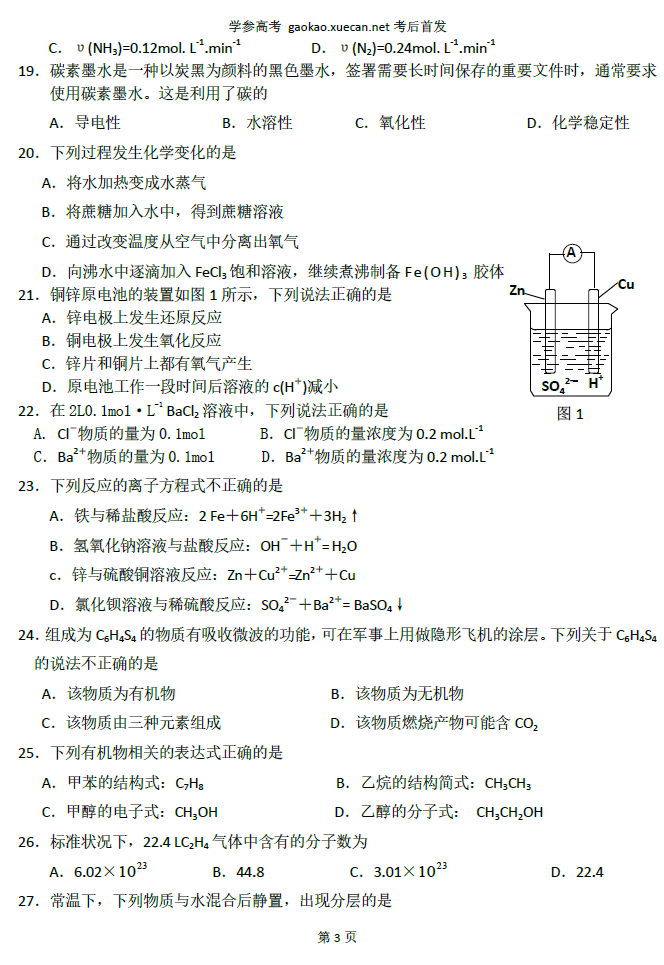 2016年6月广东省普通高中学业水平考试化学试卷真题及答案(下载)(3)