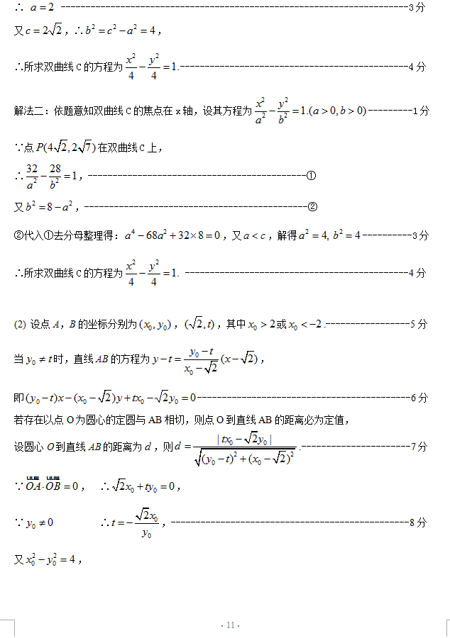 广东揭阳2014-2015学年度高中三年级学业水平考试理科数学试题(11)