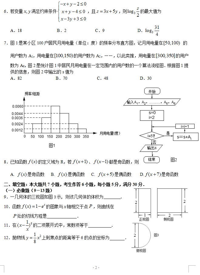广东揭阳2014-2015学年度高中三年级学业水平考试理科数学试题(2)