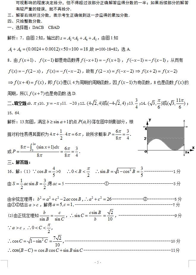 广东揭阳2014-2015学年度高中三年级学业水平考试理科数学试题(5)