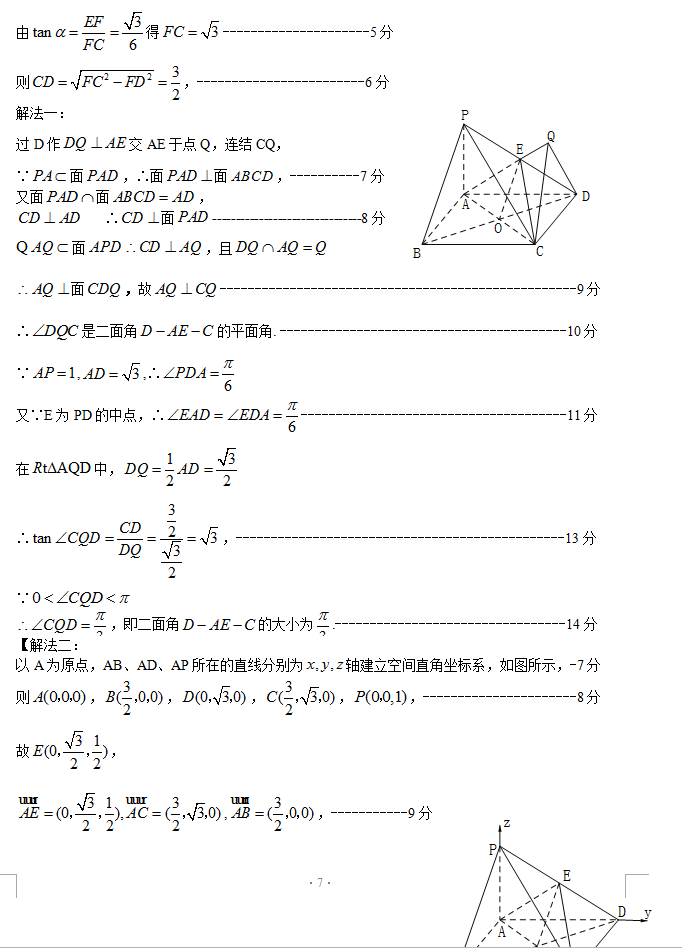 广东揭阳2014-2015学年度高中三年级学业水平考试理科数学试题(7)