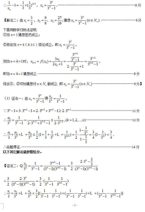 广东揭阳2014-2015学年度高中三年级学业水平考试理科数学试题(9)