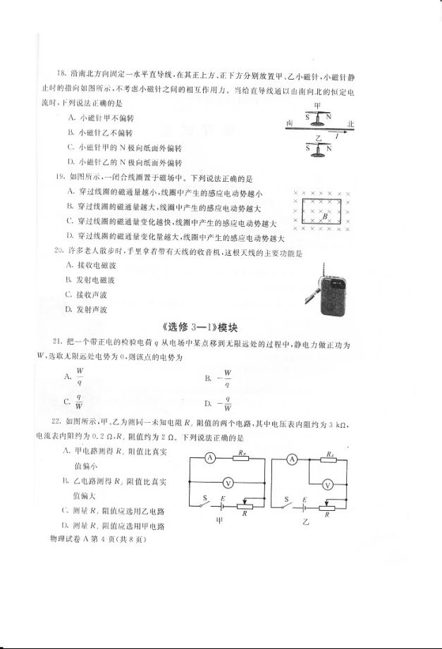 河北省普通高中2016年12月学业水平考试物理试题(4)