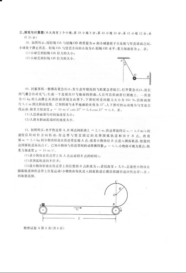 河北省普通高中2016年12月学业水平考试物理试题(8)