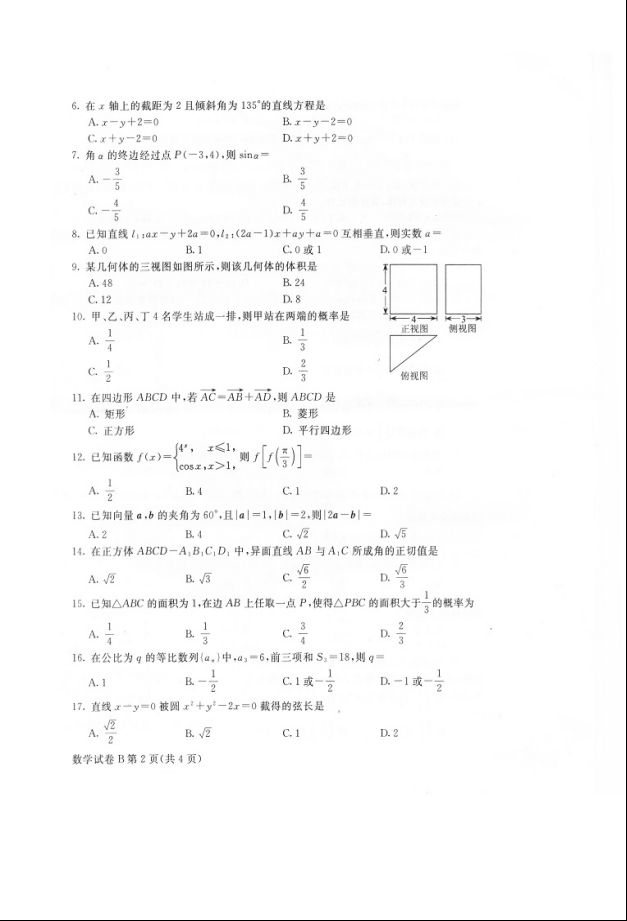 河北省2016年12月普通高中学业水平考试数学试题(2)