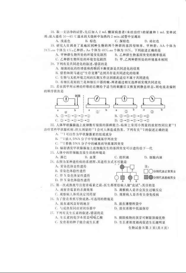 河北省2016年12月普通高中学业水平考试生物试题(3)