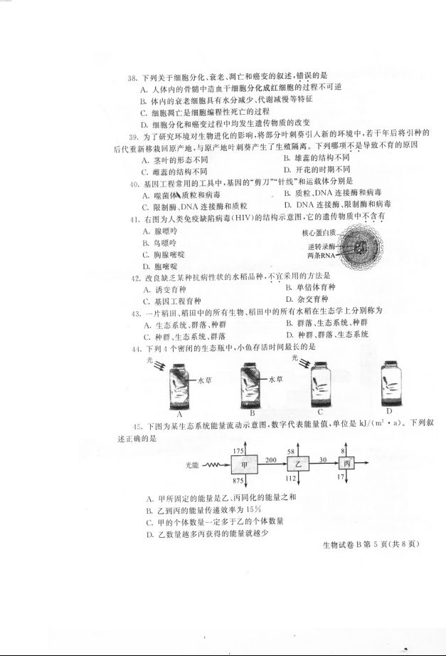 河北省2016年12月普通高中学业水平考试生物试题(5)