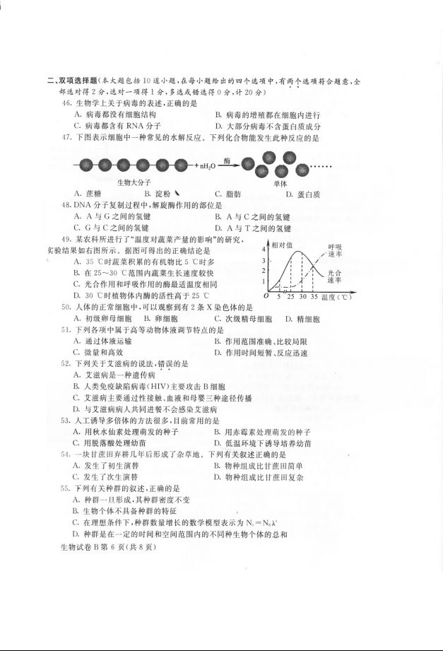 河北省2016年12月普通高中学业水平考试生物试题(6)