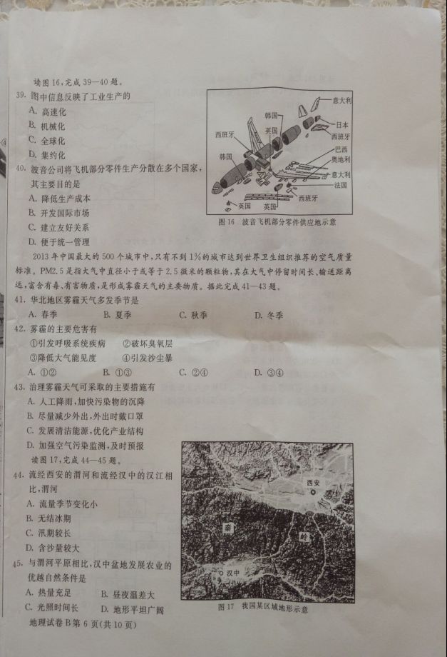 河北省2016年12月普通高中学业水平考试地理试题(6)